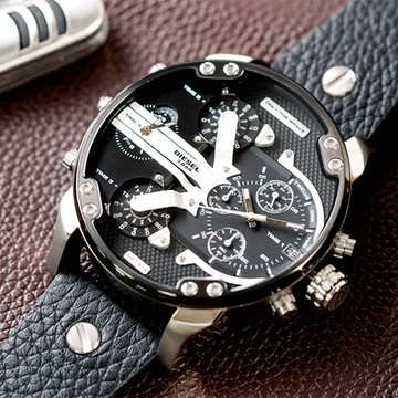 【活動價! 限時78折!】新作! 現貨 DIESEL Mr. Daddy 2.0 霸氣型男時尚多時區三眼計時皮革腕錶/黑x銀 DZ7313 大錶徑手錶 57mm 公司貨保固 熱賣中!