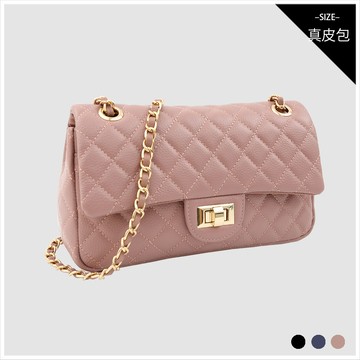 【Sp house】高雅菱格旋扣經典羊皮鍊條肩背包(4色2款可選)