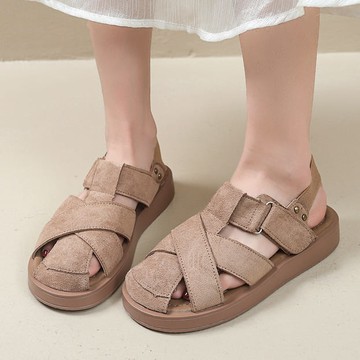 大碼涼鞋41一43女夏真皮包頭2022年新款復古學院風胖腳寬肥羅馬鞋