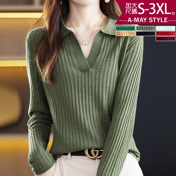 撞色滾邊多色V領針織上衣