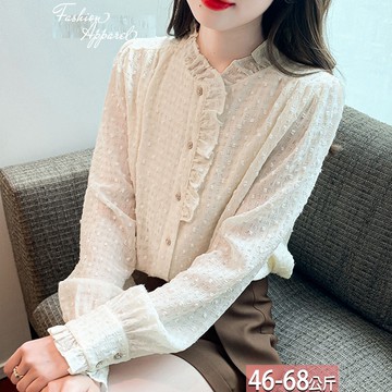 【HARPER】高級感立體花紋透膚襯衫 | 現貨 長袖上衣 透膚 襯衫 短版【CLC60637H】