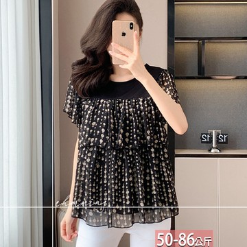 ILEY伊蕾 法式波點浪漫造型垂墜領片雪紡上衣(粉色;M-XL)1223071450