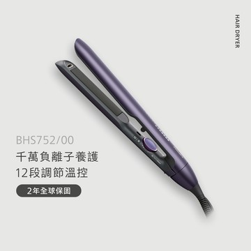【迎春煥新限搶組】飛利浦溫控護色水潤直捲兩用負離子美髮造型器-迷霧紫(BHS752/00)