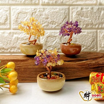 [窩在家] (預購) 金運滿載招財黃水晶樹(14cm高挑版) 開運 淨化 能量 入厝 開業