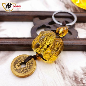 風水閣 貔貅福字掛件鑰匙扣銅木結合家居公司汽車包包掛飾男女款