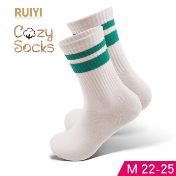 休閒無縫條紋氣墊長襪 - M白
