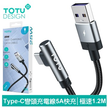 TOTU 拓途 極速系列 彎頭 Lightning 編織傳輸快充線 鋁合金 TPE 尼龍編織 15W/3A Max 1.2m 鐵灰色 1條