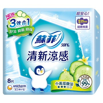 蘇菲清新涼感微涼小黃瓜衛生棉25cm8片