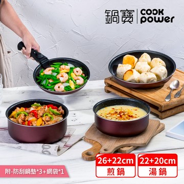 【鍋寶】百變魔法可拆式不沾鍋9件組-璀璨紅(26cm煎鍋+22cm煎鍋+22cm湯鍋+20cm湯鍋+可拆式把手+專用網袋+防刮墊布*3)_廠商直送