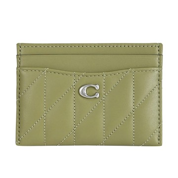 COACH CM434 簡約LOGO絎縫皮革隨身名片卡夾.軍綠