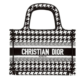 Dior 展示品 Mini Book Tote 千鳥格帆布托特手提包(白/黑)