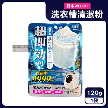 日本WELCO-速效型強洗淨除霉去汙消臭氧系洗衣筒槽清潔粉120g/藍袋(免浸泡槽洗淨除臭去滾筒內壁水垢黃漬)