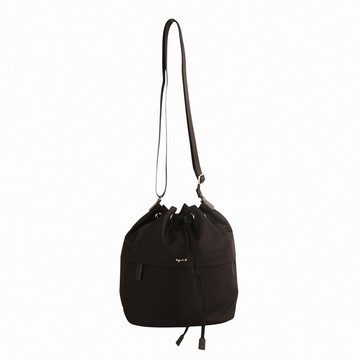 agnes b. 草寫銀字前拉鍊袋拉束尼龍水桶包(黑)小款