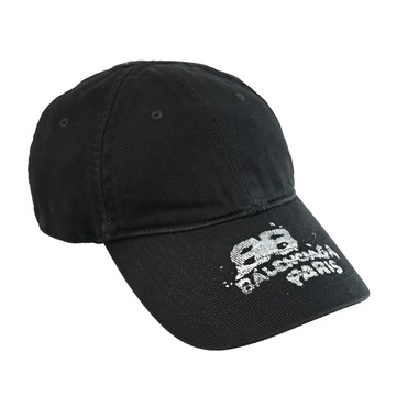 BALENCIAGA 塗鴉LOGO街頭風棉質棒球帽/遮陽帽(黑)