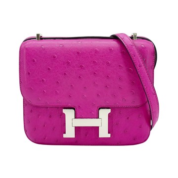 Hermes Constance Mini 鴕鳥皮銀釦斜背包(L3玫瑰紫)