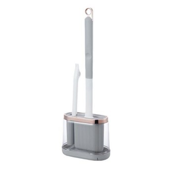 FAmILyLIFE 生活 可壁掛自動出劑矽膠馬桶刷 托盤瀝水款 深灰色 1個