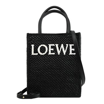 LOEWE 羅威 Standard A5 字母酒椰纖維編織手提/斜背托特包(黑色)