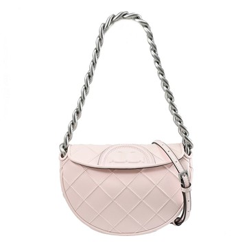 TORY BURCH 143575 Mini Fleming 菱格紋翻蓋兩用半月包.淡粉