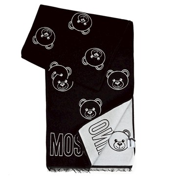 MOSCHINO 30763 M2992 滿版小熊羊毛長圍巾.黑/白