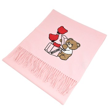 點我下載MOSCHINO 30766 M2991 小熊氣球禮物圖樣羊毛長圍巾/披肩.粉