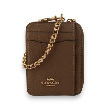 【COACH】荔枝紋皮革鍊帶零錢包-胭脂粉