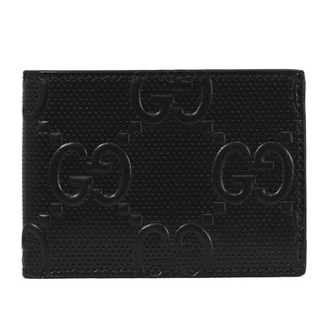 GUCCI 779841 GG LOGO壓花皮革對開零錢短夾.黑