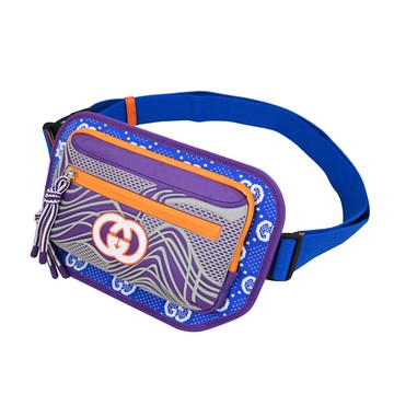 GUCCI 752102 GG LOGO 尼龍撞色緹花織布斜背胸口包/腰包.藍/紫