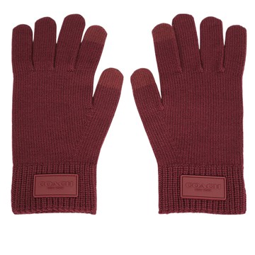 COACH 方形經典馬車標牌羊毛手套 L/XL /酒紅色