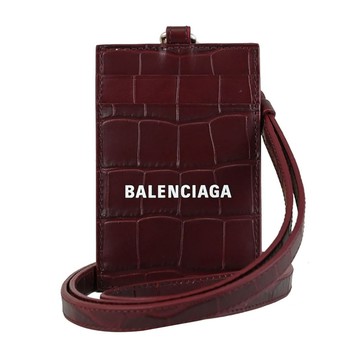 BALENCIAGA 巴黎世家 715461 品牌LOGO壓紋頸掛卡片證件夾.酒紅