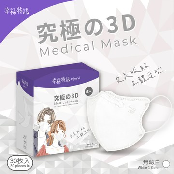 【幸福物語】成人3D立體醫用口罩-無暇白(30入/盒)