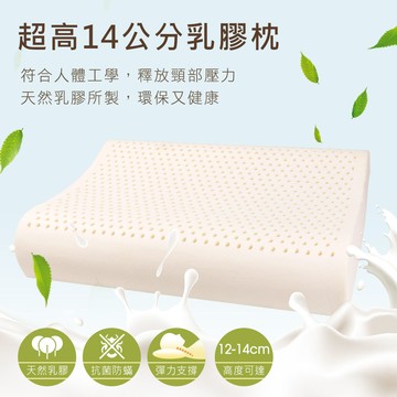 LoveCity 寢城之戀 100%天然乳膠 防蹣抗菌 人體工學乳膠枕 彈力平面型 65 x 40cm 1個