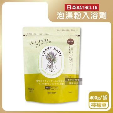 【日本BATHCLIN巴斯克林】CRAFT BATH溫泉潤澤香氛泡澡粉入浴劑400g/袋-檸檬草(綠袋)(附專用量匙,放鬆身心沐浴鹽,居家SPA泡湯粉,溫熱暖身濁湯,全家人適用)_廠商直送