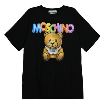 MOSCHINO 七彩氣球泰迪熊黑色短袖長版TEE 洋裝