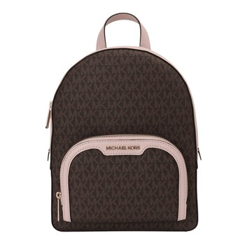 點我下載MICHAEL KORS- 防刮皮飾邊雙拉鍊後背包/咖x粉/小