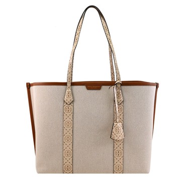 TORY BURCH 154616 Perry 燙金LOGO立體壓花三層托特包.米/咖