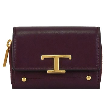 TODS T Timeless 金屬LOGO卡片零錢收納包/簡易短夾.深紫