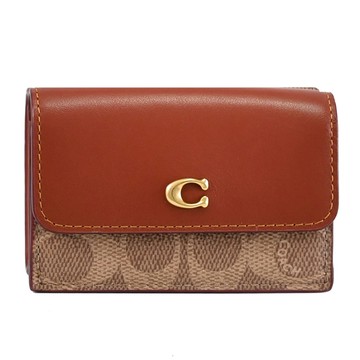 點我下載COACH CM438 經典C LOGO花紋皮革三折扣式零錢短夾.駝/紅棕