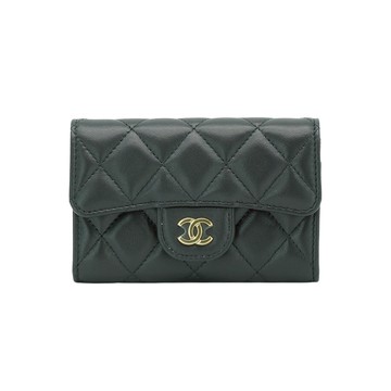 CHANEL經典雙C LOGO菱格紋小羊皮卡片/零錢夾(黑色)