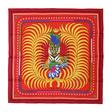 HERMES Tigre Royal 王室之虎 70 真絲圍巾(紅)