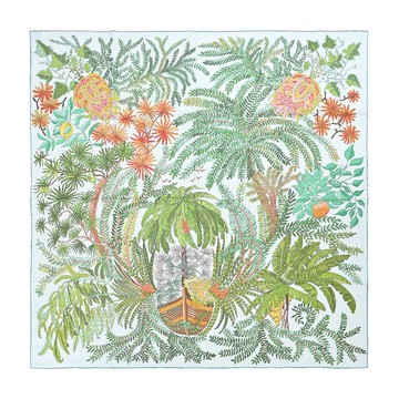 Hermes 愛馬仕 Le Jardin des Peintres 90 cm手工捲邊斜紋真絲雙面方巾(白/綠/深橘)