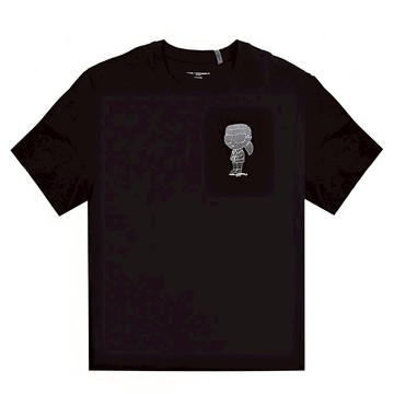 KARL LAGERFELD 卡爾 老佛爺公仔剪影頭像棉質短T恤.黑