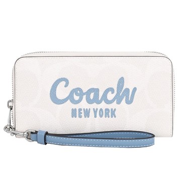 COACH 經典LOGO單層手拿包 防刮PVC皮革 L型拉鍊 零錢包 手機包 手拿包 58035 卡其黑色(現貨)▶指定Outlet商品5折起☆現貨【送禮首選★APP下單點數4倍送】