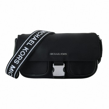 MICHAEL KORS- Khai 前雙口袋織紋背帶尼龍壓釦斜背包(素面黑)