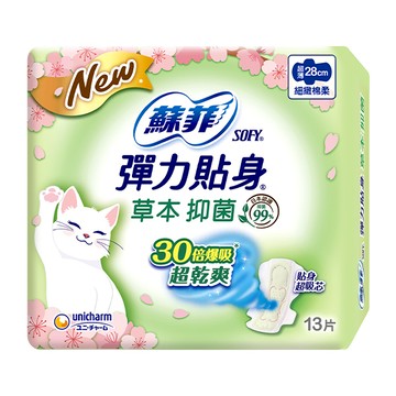 蘇菲彈力抑菌潔淨夜用28cm13片(新舊包裝隨機出貨)