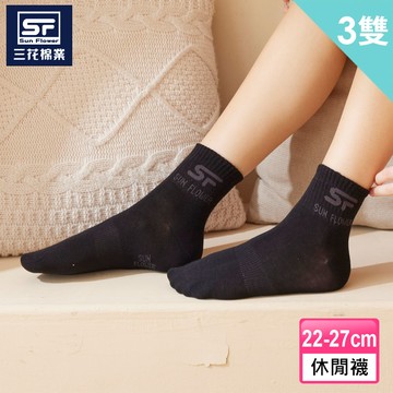Sun Flower三花 1/2休閒襪(薄)(22~27cm)#50A黑 x3入團購組