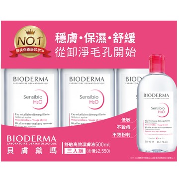 BIODERMA貝膚黛瑪 舒敏高效潔膚液500ml三入組