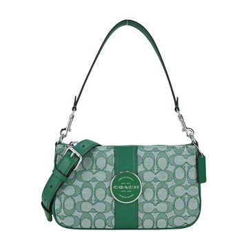 COACH C2588 Ergo 經典C字織布皮革單肩彎月包.湖綠