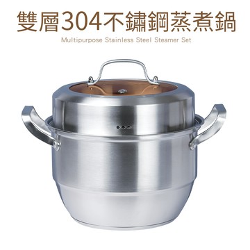 燕三 防滾瀉系列 不鏽鋼雙耳煲連不鏽鋼蓋 配蒸籠 23cm