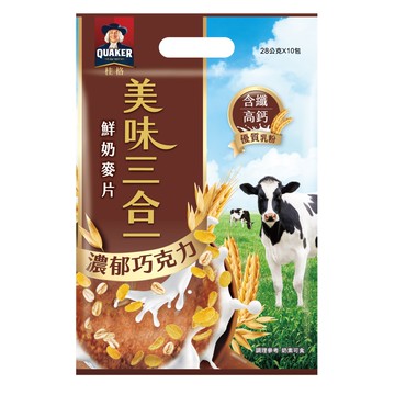 桂格美味三合一嚴選牛乳鮮奶麥片28gX10包X4袋