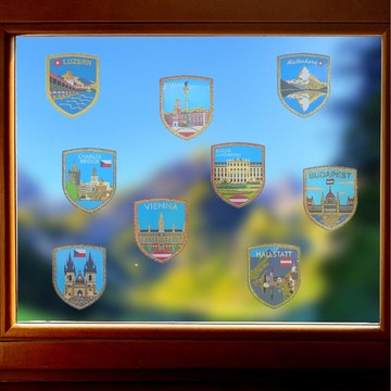 《A-ONE》歐洲旅遊玻璃貼紙 金蔥一套9入 瑞士半透明窗貼 匈牙利靜電貼 奧地利玻璃貼 伊斯蘭窗戶玻璃貼 _廠商直送